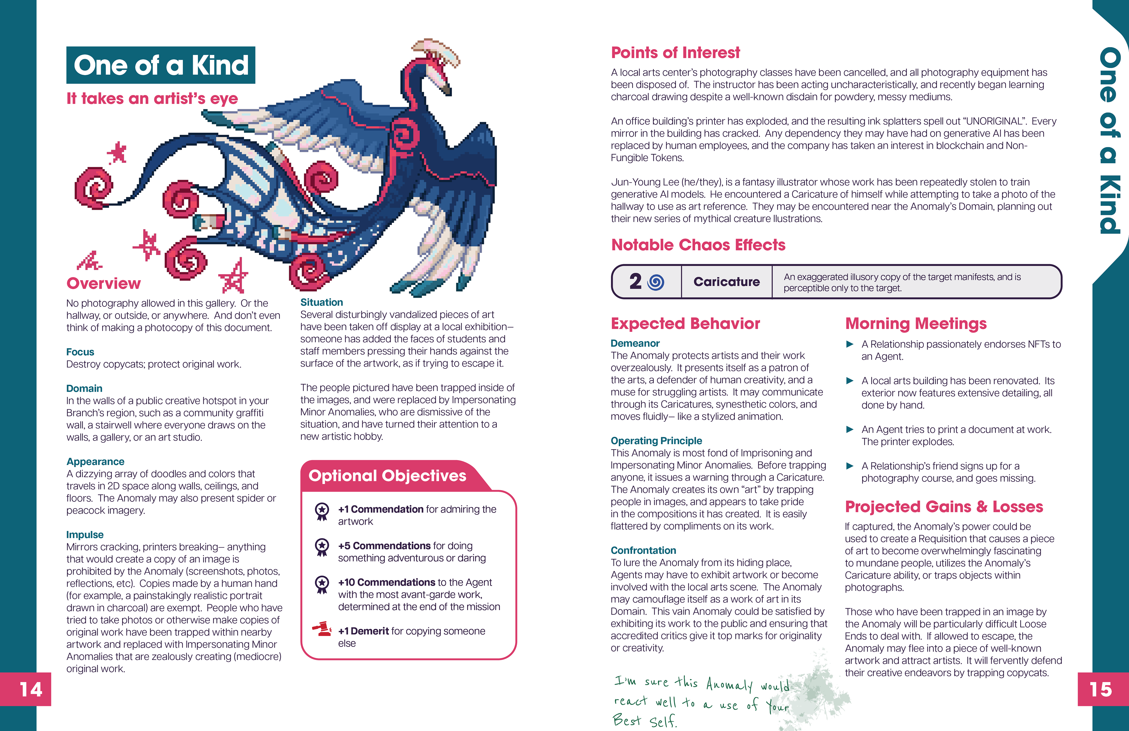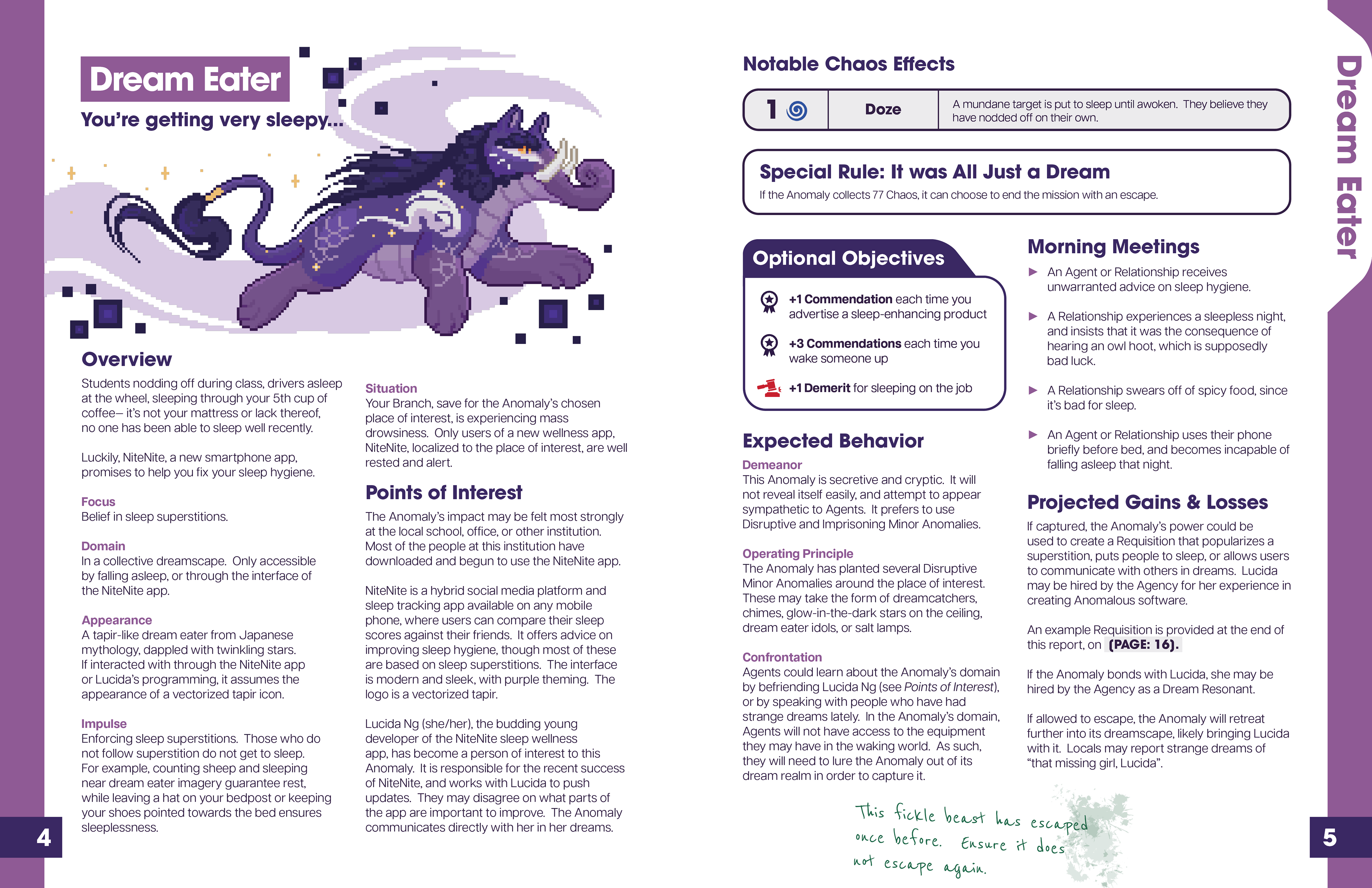 Book layouts. A study of the formatting used in "Triangle Agency", a tabletop role-playing game published by Haunted Table LLC. These spreads are not affiliated with Triangle Agency or Haunted Table, LLC.