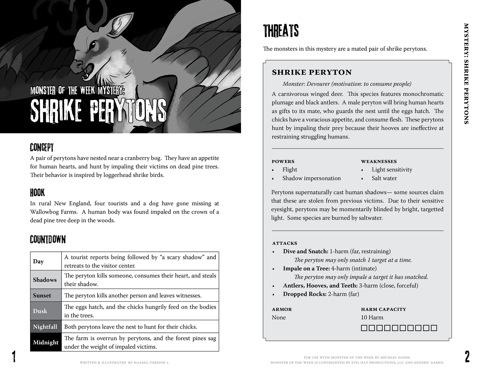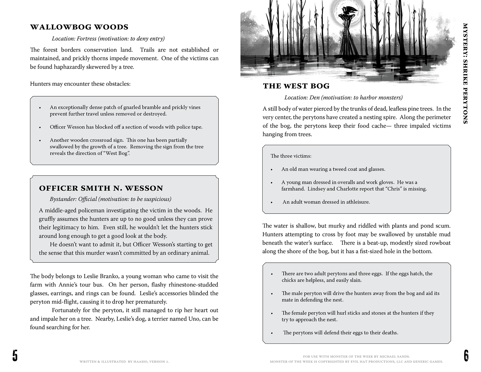 An alternate layout style for Michael Sands' "Monster of the Week" rulebook. I had trouble skimming and referencing the rulebook during gameplay, so I made my own layout structure prioritizing quick readability.
